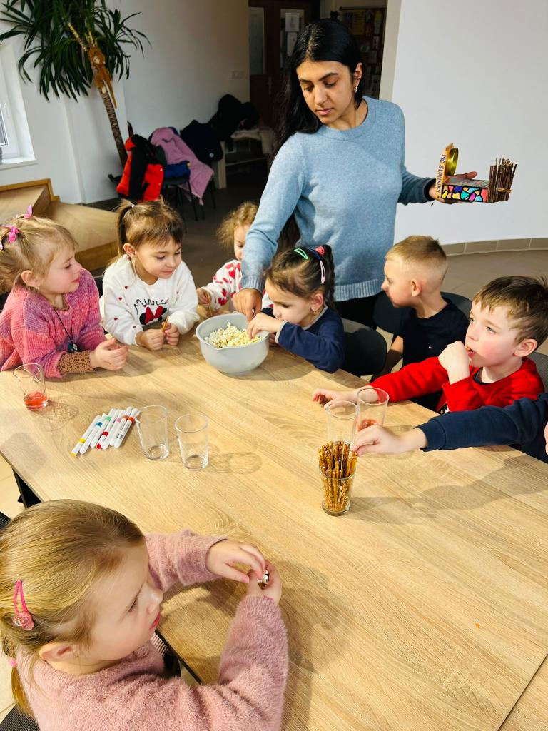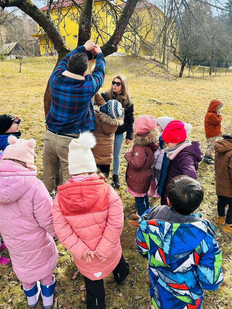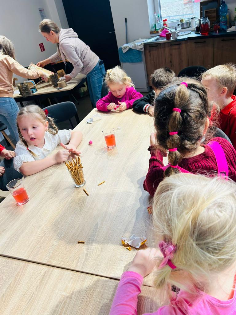 Dnes sme uvoľnili priestory našej materskej školy, aby sa naši budúci školáci mohli v pokoji a sústredene venovať úlohám v rámci školskej spôsobilosti. My ostatní sme sa medzitým vybrali do komunitného centra, kde nás čakal krásny program. Keďže sa tento týždeň venujeme poznávaniu vlastností materiálov, teta Emka, teta Vierka a ujo Peter si pre nás pripravili drevené vtáčie búdky, ktoré sme si spoločne vyzdobili. Deti mali možnosť pracovať s drevom, pozorovať jeho vlastnosti a zároveň rozvíjať svoju kreativitu. Atmosféra bola výborná, čakalo nás milé pohostenie a rozprávka, ktorá deti veľmi zaujala. Na záver nás teta Emka a ujo Peťo odprevadili späť a cestou do škôlky sme si v obci zavesili naše hotové búdky, ktoré budú robiť radosť nielen nám, ale aj vtáčikom. Zo srdca ďakujeme za krásne dopoludnie, príjemnú atmosféru a ochotu venovať sa našim deťom. Veľmi si to vážime.