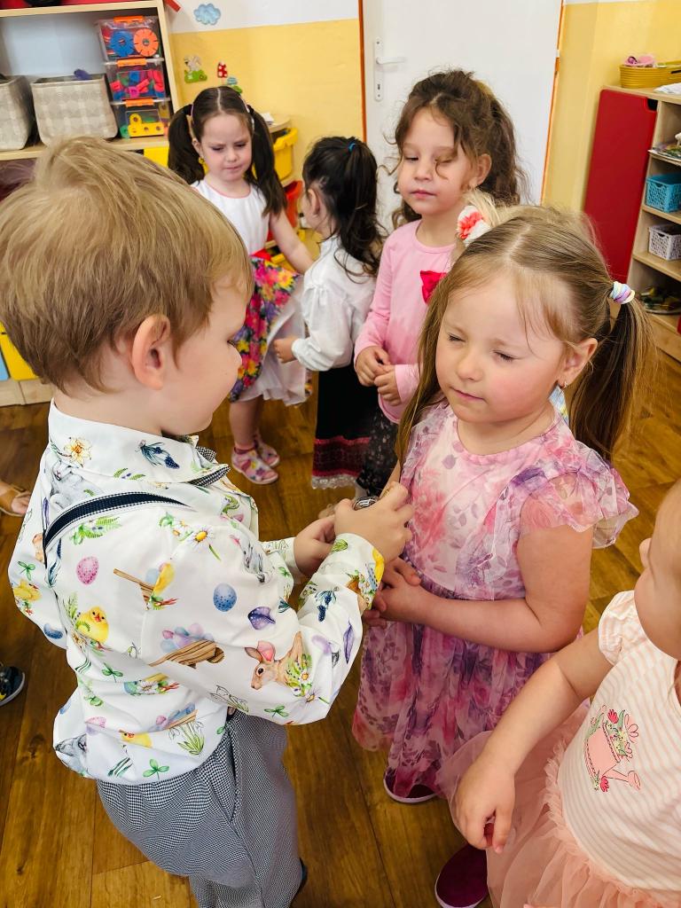 Dnešný deň bol čarovný, plný dojmov a zážitkov. Chlapci prichádzali s korbáčikmi a vedrami a dievčatká s čokoládovou výslužkou. Naši škôlkari nás veľmi prekvapili. Nikto sa nebál, všetky dievky chceli byť oliate a smiech a výskot sa ozýval po celej materskej škole. Okrem šibačky sme sa dnes rozlúčili s našou pedagogickou asistentkou Sofiou, ktorej prajeme aby sa jej vysnívaný sen a cieľ splnil a na nás nezabudla. Navzájom sme sa vystískali, odovzdali darčeky a na záver nechýbala ľudová veselica a pohostenie o ktoré sa postarali mamičky. Všetkým našim rodinkám prajeme krásne a požehnané sviatky v kruhu svojich najbližších. Veselú Veľkú noc a veľa slniečka! Radosť, smiech, spokojnosť a pre našich chlapcov krásne vajíčka.