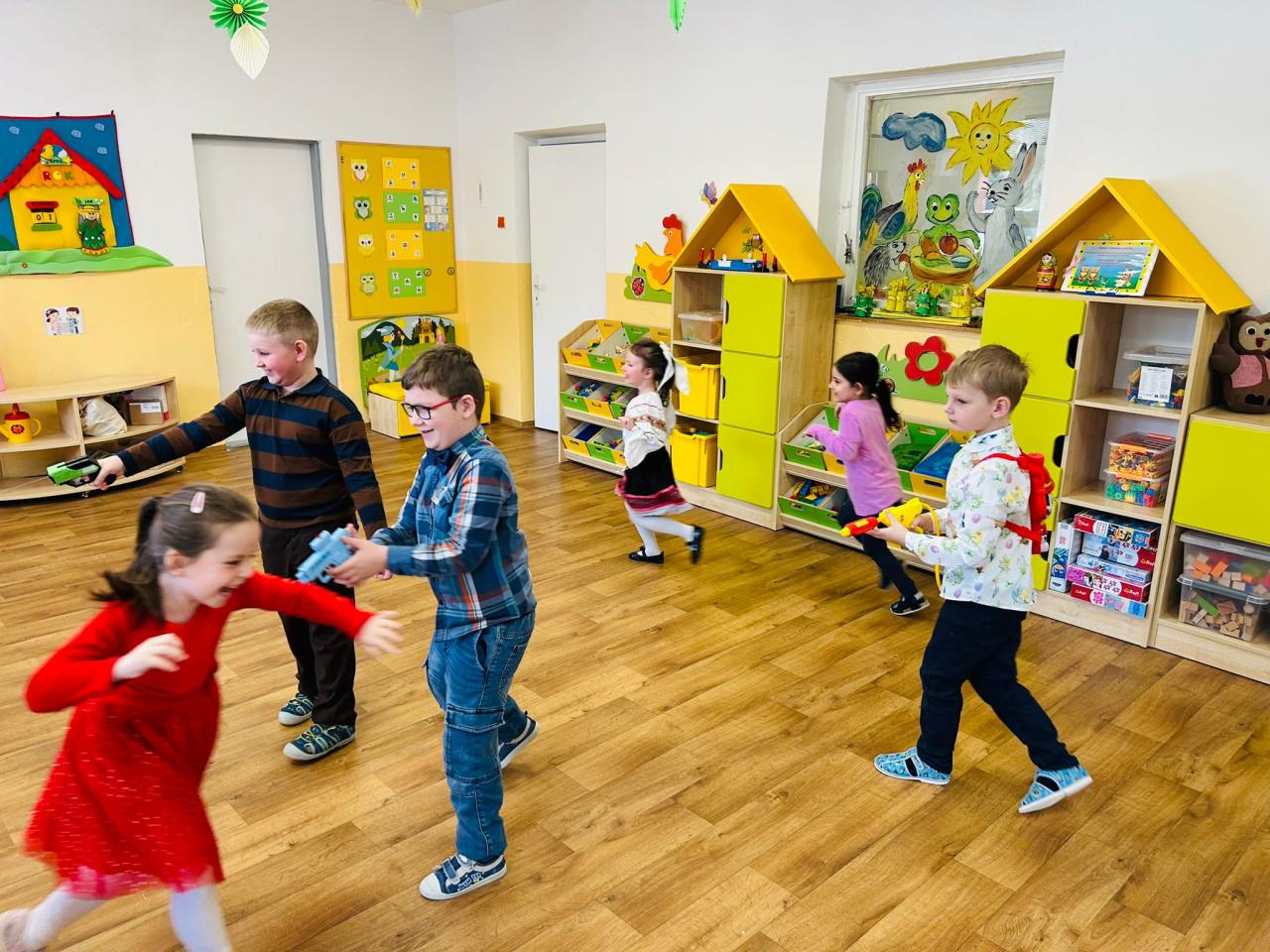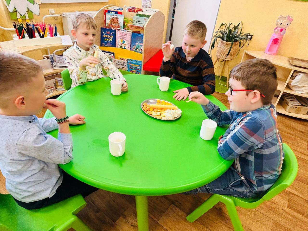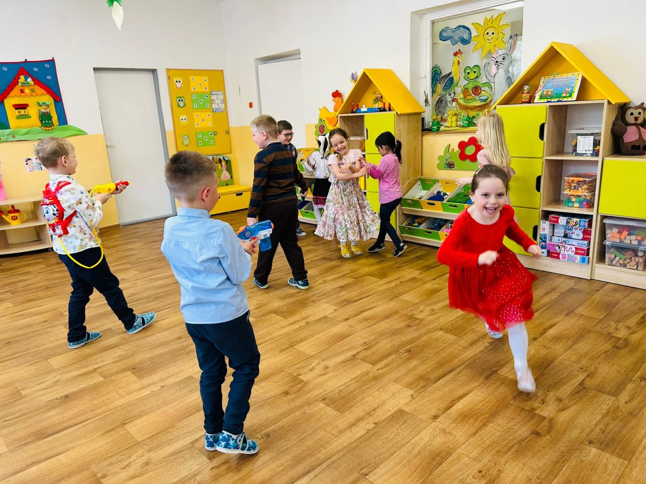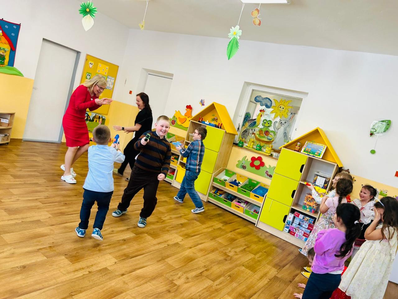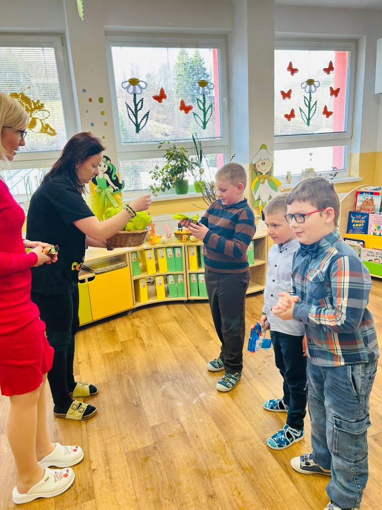 Veľkonočné sviatky prišli do škôlky v tej najkrajšej podobe – plné tradícií, radosti a detského smiechu. Deti si ich naplno užili počas obľúbenej školkárskej kupačky, ktorá sa niesla v duchu veselosti a dobrej nálady. Chlapci si pripravili tradičné korbáče a s nadšením sa pustili do šibania svojich kamarátok. Nechýbali vedierka s vodou ani veselé vodné pištole, voňavky, ktoré ešte viac umocnili zážitok z tohto dňa. Dievčatá ich za odmenu obdarovali výslužkou v podobe farebných vajíčok a sladkých zajkov. Smiech a výskot detí sa niesol celou škôlkou a vytváral nezabudnuteľnú atmosféru plnú radosti. Po veselej kúpačke nechýbalo ani malé pohostenie. Všetkým našim rodinkám prajeme pokojné, radostné a slnkom zaliate veľkonočné sviatky.