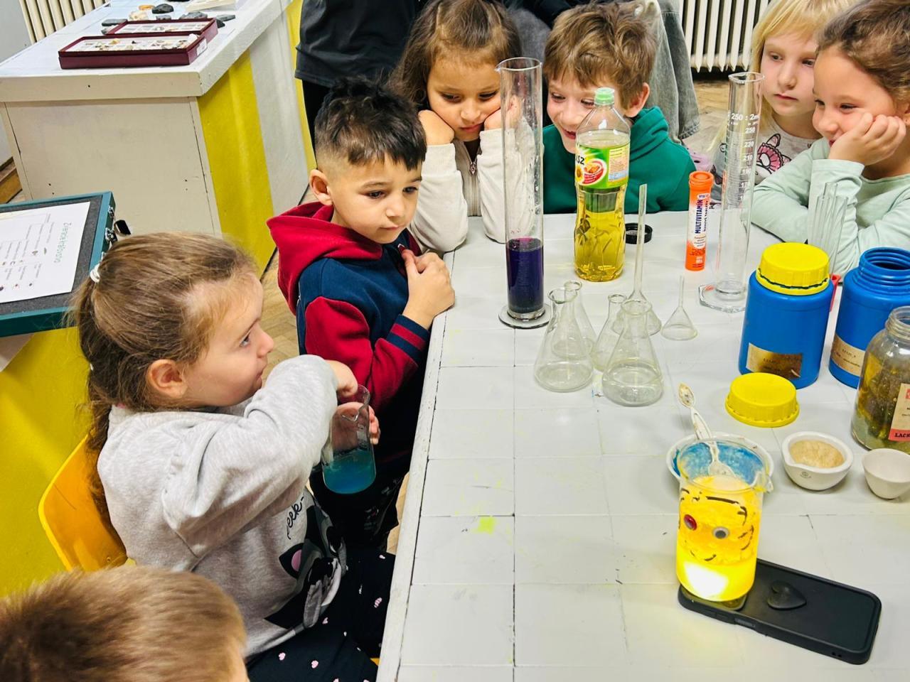 V našej materskej škole sme prežili výnimočný týždeň plný objavovania, pokusov a nových zážitkov. Témou celého týždňa bol „Malý výskumník“ a deti mali príležitosť nahliadnuť do tajov prírody, vedy a experimentovania hravou formou. Deti si hneď v pondelok užili mobilnú soľnú jaskyňu, ktorá má účinky podobné ako morský vzduch – podporuje správne dýchanie a pôsobí preventívne proti chorobám. Počas týždňa deti pozorovali rôzne pokusy, miešali farby, skúmali prírodné javy a hravou formou sa učili myslieť ako malí vedci. Veľké poďakovanie patrí Základnej škole, ktorá nám otvorila dvere do sveta skutočnej vedy. Pani učiteľky Mgr. Tomašková a Mgr. Klapačová pre deti pripravili zaujímavé ukážky, pokusy a vysvetlenia, vďaka ktorým sme sa dozvedeli ako vzniká blesk, čo sa skrýva za jednoduchými javmi fyziky a ako fungujú základné princípy chémie a prvouky. Ich trpezlivosť, nadšenie a krásne pripravený program deti úplne nadchol. Deti odchádzali zo školy s iskričkami v očiach, plné nových zážitkov, poznatkov a chuti ďalej objavovať svet okolo seba.